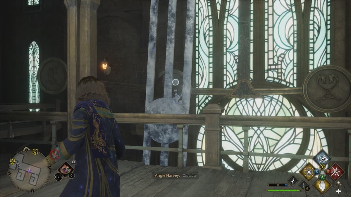 Здесь потребуются заклинания Алохомора и Глациус или Арресто Моментум. В качестве награды за решение загадки получишь 2 рецепта для Колдовского заклинания, 500 галлеонов и легендарный сундук.