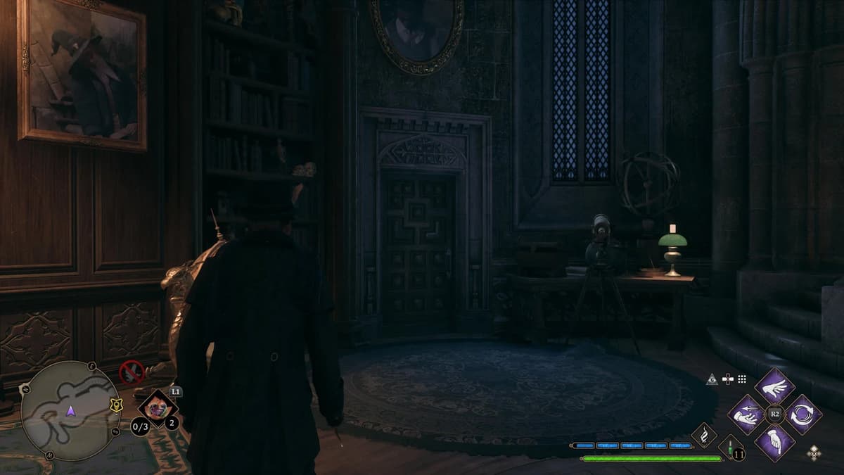 В кабинете найди дверь рядом со столом с телескопом. На столе будет сундук с рукояткой палочки — не пропусти.