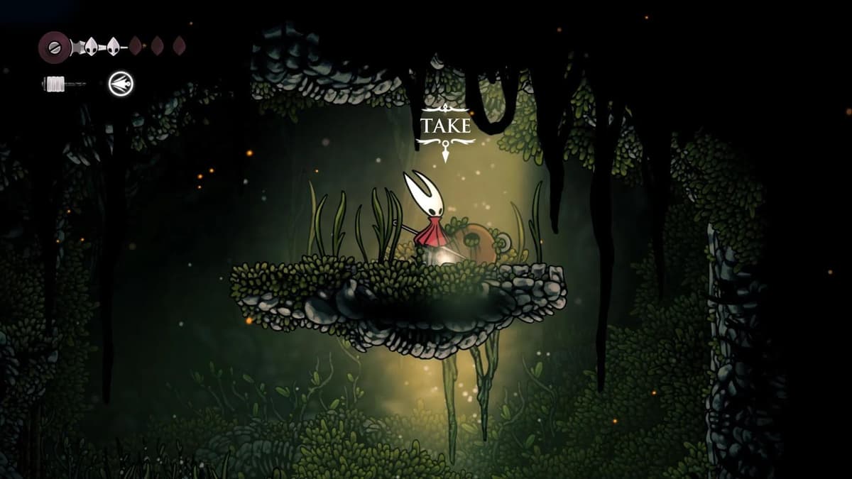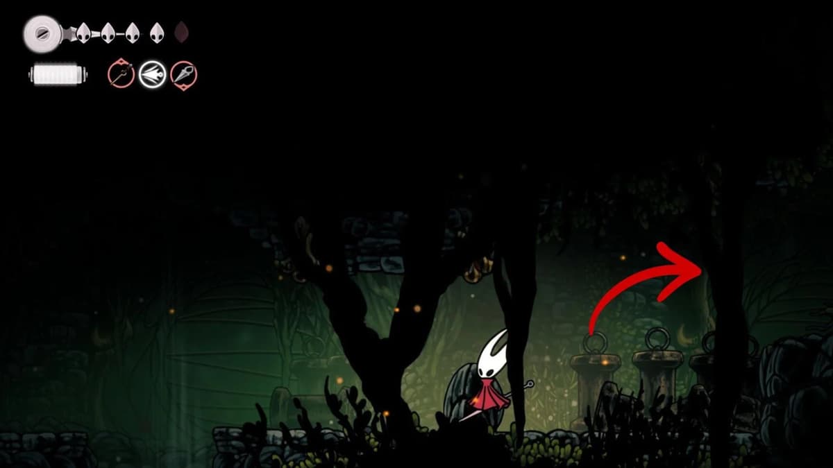 Где найти. От правого выхода из области, где живёт Швея (Seamstress), встань на платформу перед ветровым потоком и сорвись вниз, прижимаясь к правой стене. Там спрятана ниша.