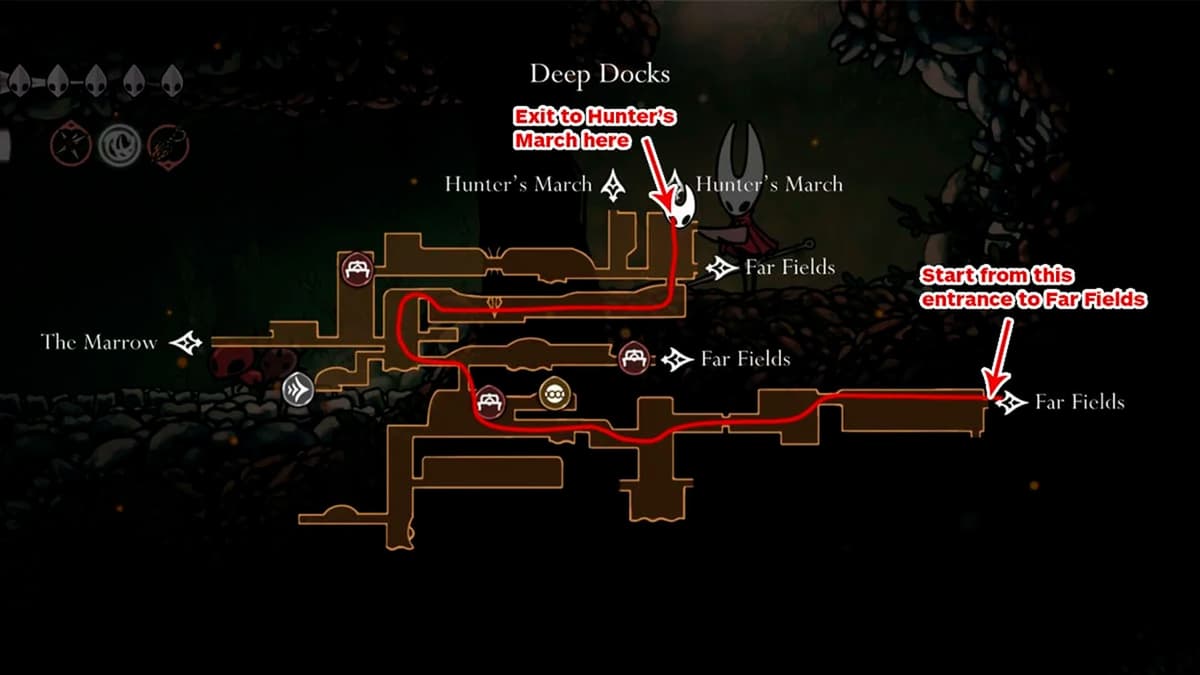 Добраться до Капеллы проще через Глубокие доки – отсюда выдвигайся на восток к Пути Охотника. Для маршрута потребуется Плащ Бродяги — он открывается после выполнения желания «Гибкие Позвоночники» в Дальних Полях.