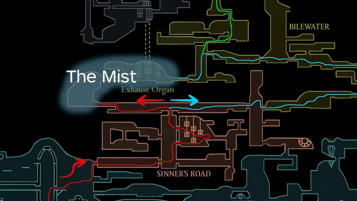 Идти к нему можно двумя путями: через Путь Грешника или из Желчноводья — оба ведут в Хоровые Палаты Цитадели. Главное — пройти через временный лабиринт Мглы. Не паникуй: у Тумана есть правило. Ищи светящихся белых бабочек — подбирайся к ним и следуй за их маршрутом до выхода. Так ты выберешься к арене босса без лишних кругов.