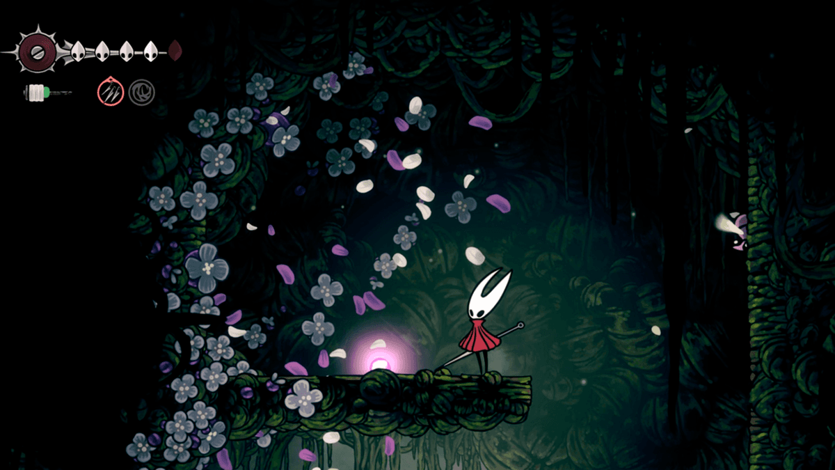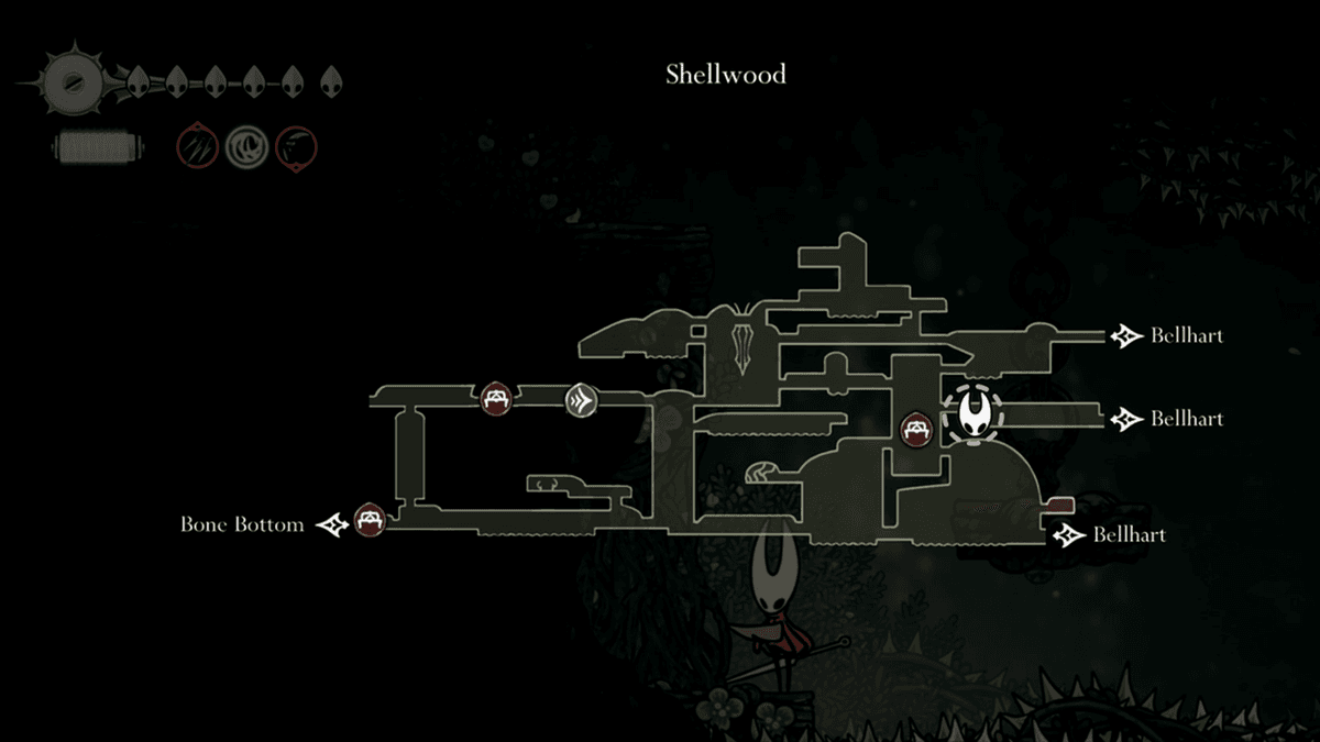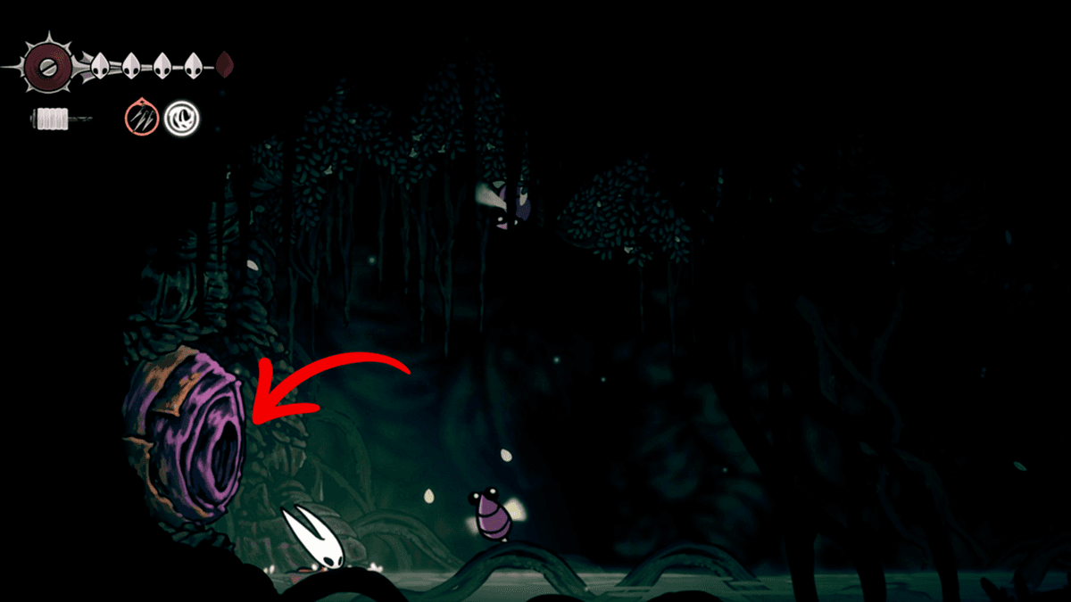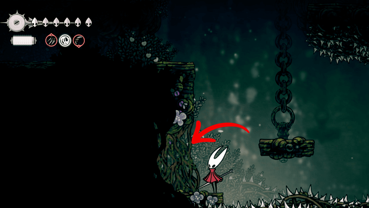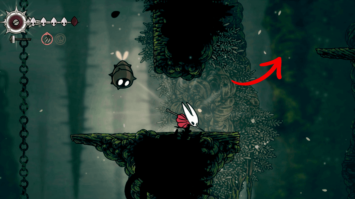 Последний предмет спрятан в тоннеле рядом со Звонвиллем, соединяющем город со скамейкой в Панцирном саду. Спрыгни в дыру слева от входа на арену Вдовы (о том, как победить этого босса, мы рассказывали тут) и продолжай двигаться налево и вверх, пока не доберёшься до разрушаемой стенки. Пробейся через неё в новую зону Леса — вот и шорткат. Продолжай двигаться налево, минуя шипы — на дальней стенке за хрупкой лозой ты найдёшь последнее сердце.