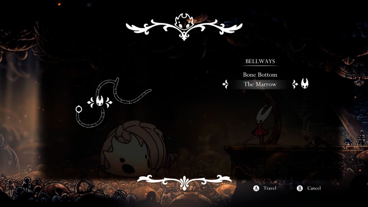 Зверь сидит высоко в районе The Marrow, справа от Moss Grotto и города Bone Bottom. От Шахры (местный картограф-торговец) надо подняться наверх, держаться к левой развилке на Mosshome или вернуться направо — туда, где огромная комната босса, усыпанная колоколами.