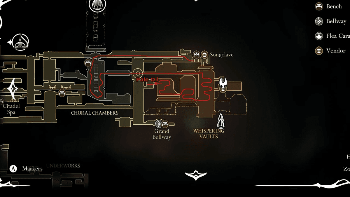 Для начала разблокируй второй акт через победу над Последним судьёй или Фантомом — о них мы писали в отдельных гайдах тут и тут. После этого вернись к жуку в Звонвилле. На этот раз он скажет Хорнет, что для улучшения иглы ему нужно специальное масло, которое можно найти неподалёку. Отправляйся на восток, как показано на карте ниже.