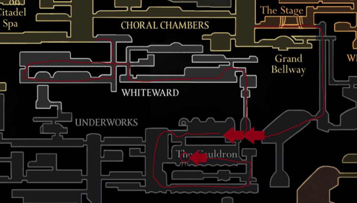 Есть два способа его получить: победить босса Троббио или получить Белый Ключ в правой верхней части Цитадели рядом с Первым святилищем. После этого спускайся в нижнюю левую башню и активируй лифт в Уайтворд. Здесь тебе предстоит пройти через сложную платформинговую зону до Котла. В конце локации ожидает алтарь с заветным «Гарпуном».
