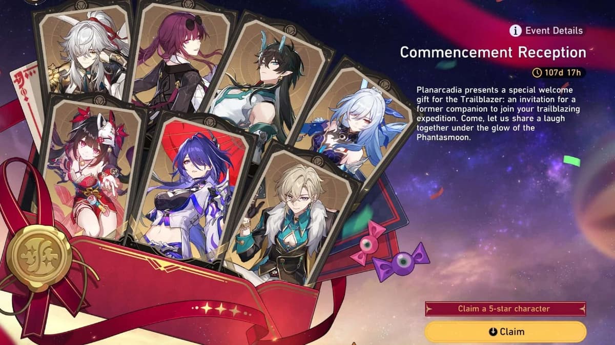 Событие Приёмный центр позволяет бесплатно выбрать одного из семи пятизвёздочных персонажей сразу после обновления. Селектор доступен до конца ивента.