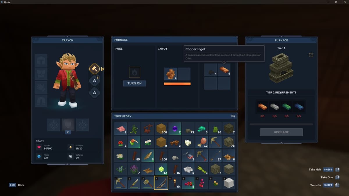 В топливо кидай дополнительные брёвна — они поддерживают огонь. Как только печь начнёт работать, положи медную руду, и она постепенно превратится в медные слитки.