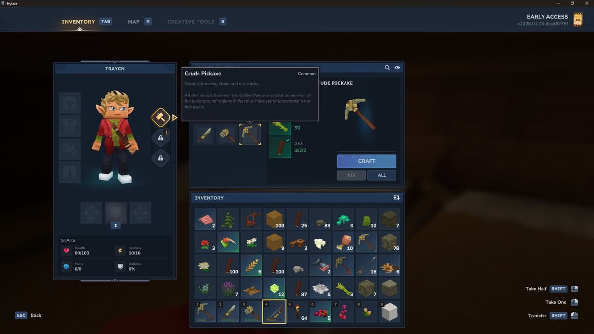 Камень можно добыть киркой. А вот за деревом удобнее идти с грубым топором (Crude Hatchet), если хочешь рубить быстрее.