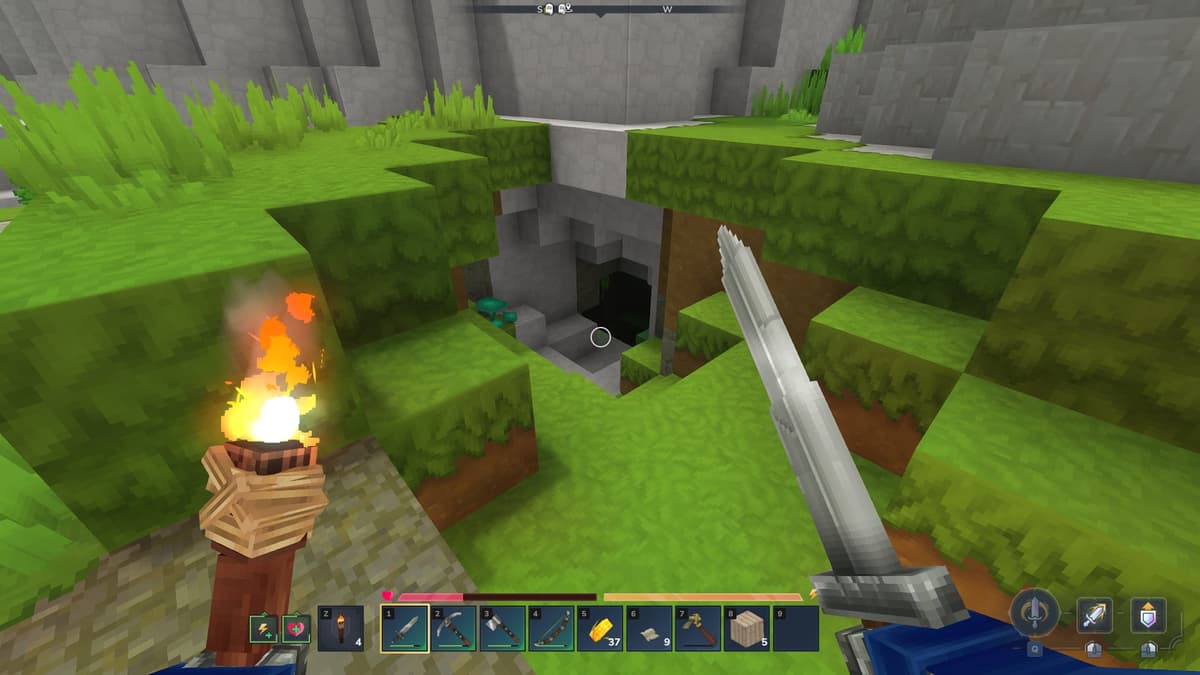 Пещеры — это твой главный источник руды и полезного лута. Они встречаются часто, и обычно заметны по большому провалу/входу в горе или в земле.