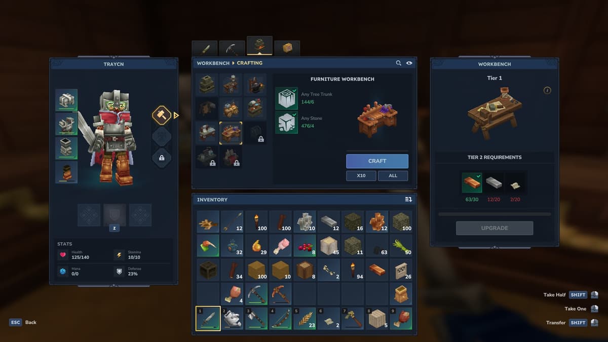 Когда ты расставил верстаки на базе, они будут 1-го уровня. Подходи к каждому — игра покажет, что нужно для прокачки.