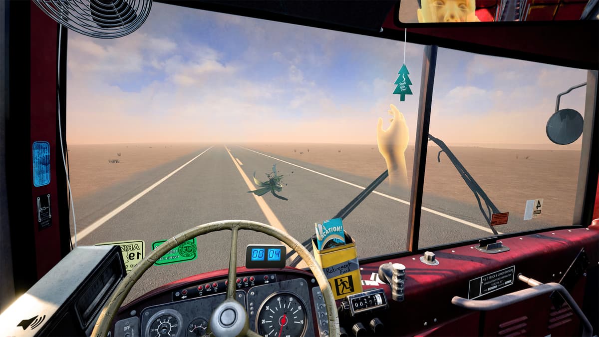 Игрока садят в кабину междугороднего автобуса посреди пустыни и всё, что требуется делать: проехать из пункта А в пункт Б не съезжая на обочину. Казалось бы, что в этом сложного, а то, что поездка только в одну сторону занимает 8 часов реального времени. Зажать кнопку газа на геймпаде и отойти заниматься другими делами тоже нельзя, автобус постоянно клонит вправо, необходимо подруливать. Кстати, если таки съехали на обочину, то придётся ждать эвакуатор пару часов.