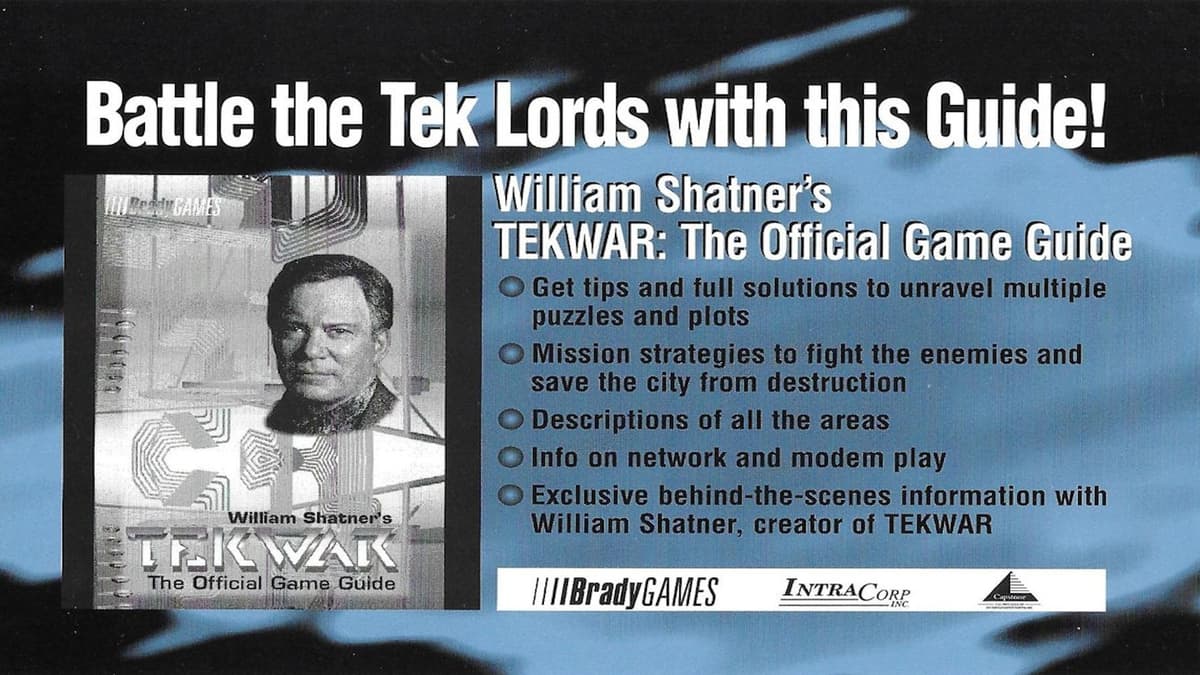 Вот только книги серии TekWar Шатнер писал не сам, за всё отвечал его гострайтер Рон Гуларт. Книги имели какой-никакой успех, но не сказать, что были выдающимися, скорее представляли собой типичный «pulp fiction». То есть дешёвое чтиво для того, чтобы убить время и слегка развлечься. Тем не менее у книг была хорошая база для их превращения в видеоигру, чем Шатнер и занялся, обратившись к Capstone Software.