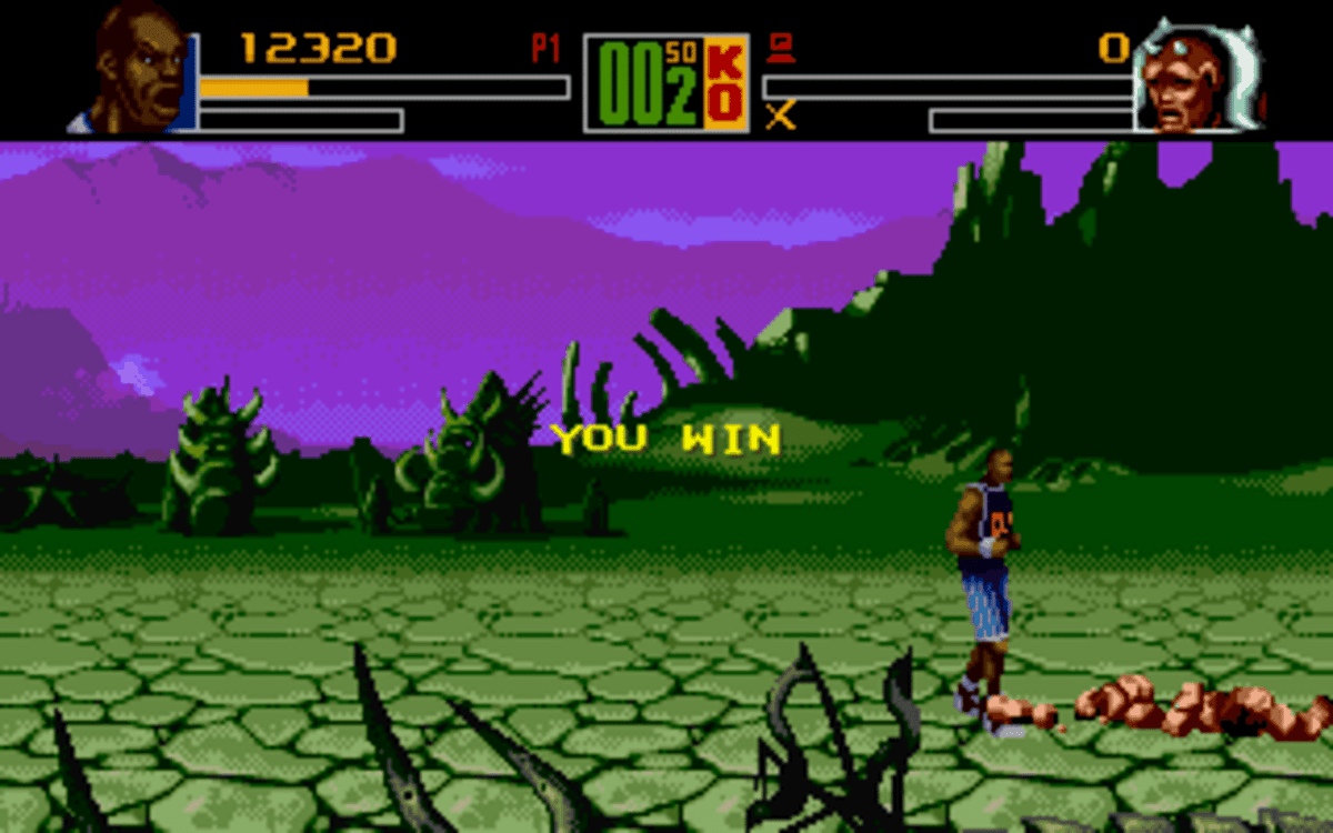 Впрочем, ладно, не стоит быть слишком строгим к сюжету. В конце концов сценарий никогда не был сильной стороной файтингов. В них люди шли только ради геймплея и как же тут с ним обстоят дела? Нууу, гораздо хуже, чем хотелось. На протяжение сюжетной линии у нас под управлением будет только Шакил О’Нил, который непонятно откуда выучил кучу боевых приёмов. Хотя, это утверждение верно только для «счастливых» обладателей игры на консоли SNES.