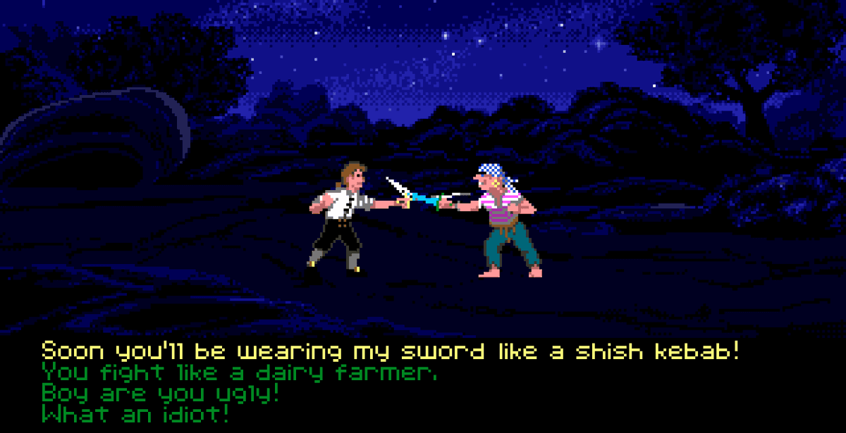 Первый же геймплейный элемент, что все безоговорочно приняли, так это то, что в игре не будет привычных пиратских дуэлей. Шафер и Гилберт просмотрели десятки фильмов о морских разбойниках и заметили, что те зачастую сражаются не саблями, а на словах. Постоянно подтрунивая над противником, выводя того из себя. В остальном геймплей решили оставить традиционным для жанра, так называемый point-and-click.