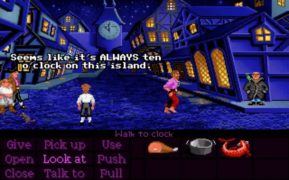 The Secret of Monkey Island — образцово-показательный квест. Всё, что игрок делает, это перемещается из одной локации в другую. Собирает важные для прохождения предметы в инвентарь, да ведёт длинные разговоры с персонажами. Однако не думайте, что будет просто, ведь это проект старой школы. Здесь нельзя просто ткнуть на нужный предмет и позволить игре самостоятельно выбрать правильное действие.