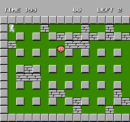 Вы появлялись в небольшом лабиринте. Какая-то часть проходов оказывалась замурована камнями, а по просторным коридорам ходили враждебные шарики. Управляя роботом, Бомберменом, нам требовалось отыскать выход на следующий уровень лабиринта. Заветный проход скрывался за одним из каменных блоков. Задача проста: нужно уворачиваясь от противников расставлять бомбы рядом с завалами и расчищать себе путь.