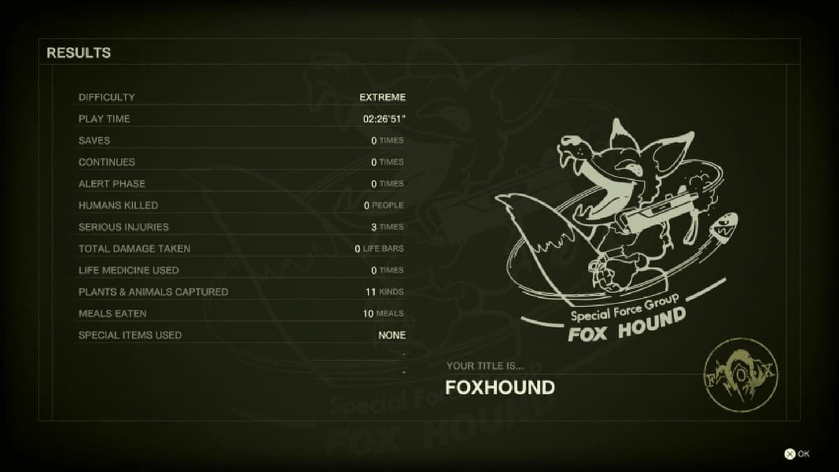 На финише у вас сходится всё: идеальный лист статистики, таймер в зелёной зоне, звание и желанные «вознаграждения ветерана» на следующий раз — от краски для лица «Бесконечность» до Изи-гана (если чего-то из этого ещё не было). Для платины на PlayStation именно FOXHOUND — «обязательная златка», без него никак, так что закрыть ранг — не просто личная победа, а формальный чекбокс на пути к заветной сотке.