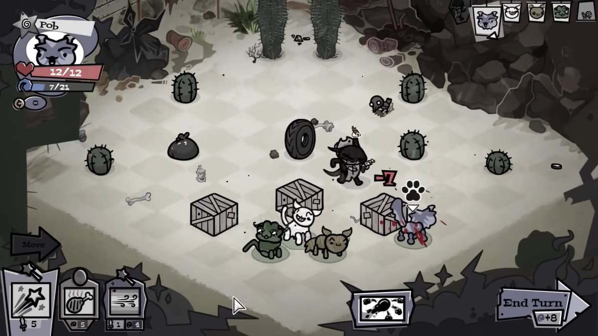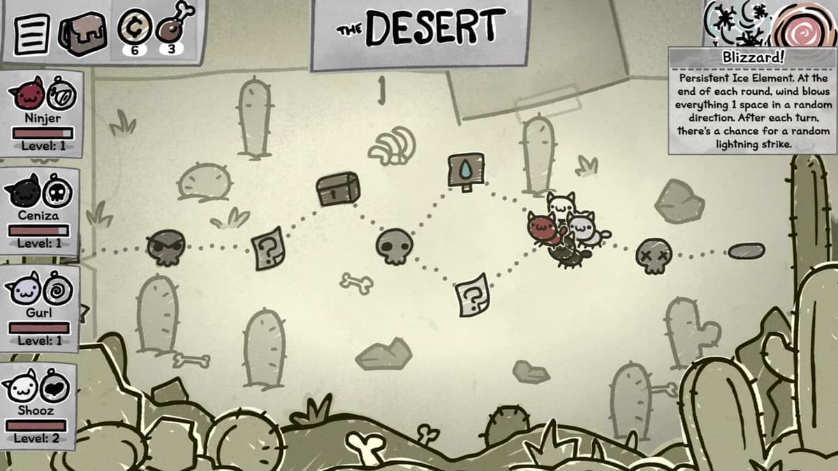 Пустыня в Mewgenics проверяет не количество наносимого урона, а твою внимательность и тактику. Держи воду под рукой, вовремя используй навык Number One и лечись с запасом — тогда Heatwave тебе не помешает.
