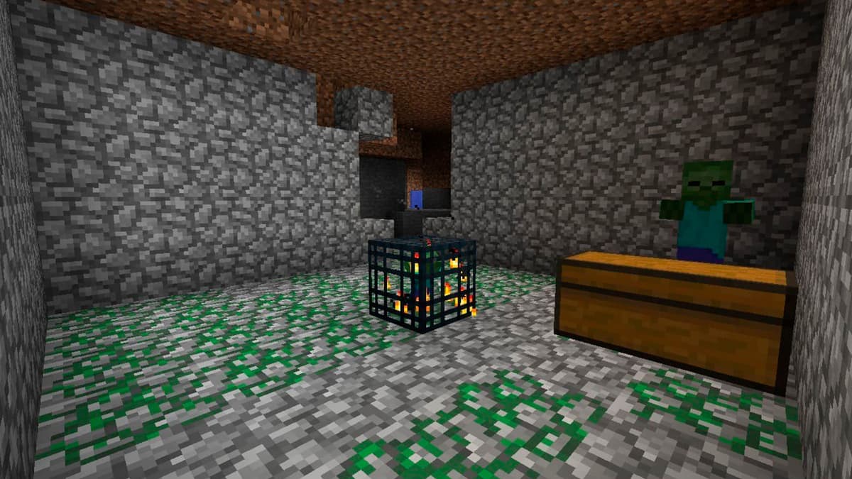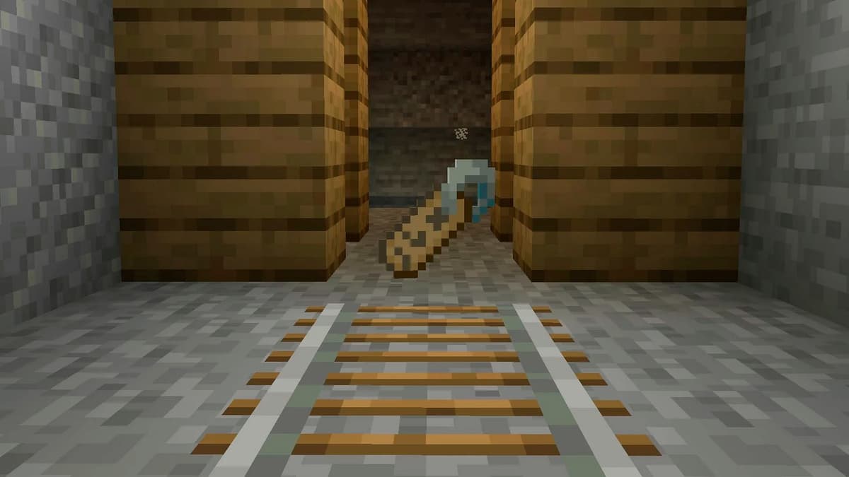 В шахтах, где есть рельсы и паутины: рядом вагонетки с сундуками.