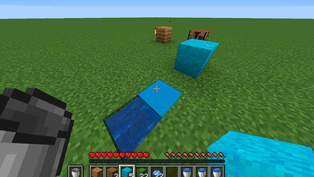 Яма 1×1 с водой у площадки или башня‑конвертер.