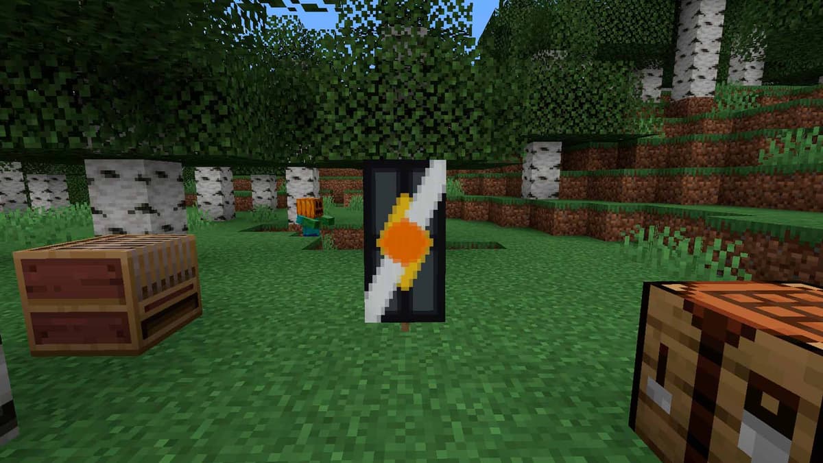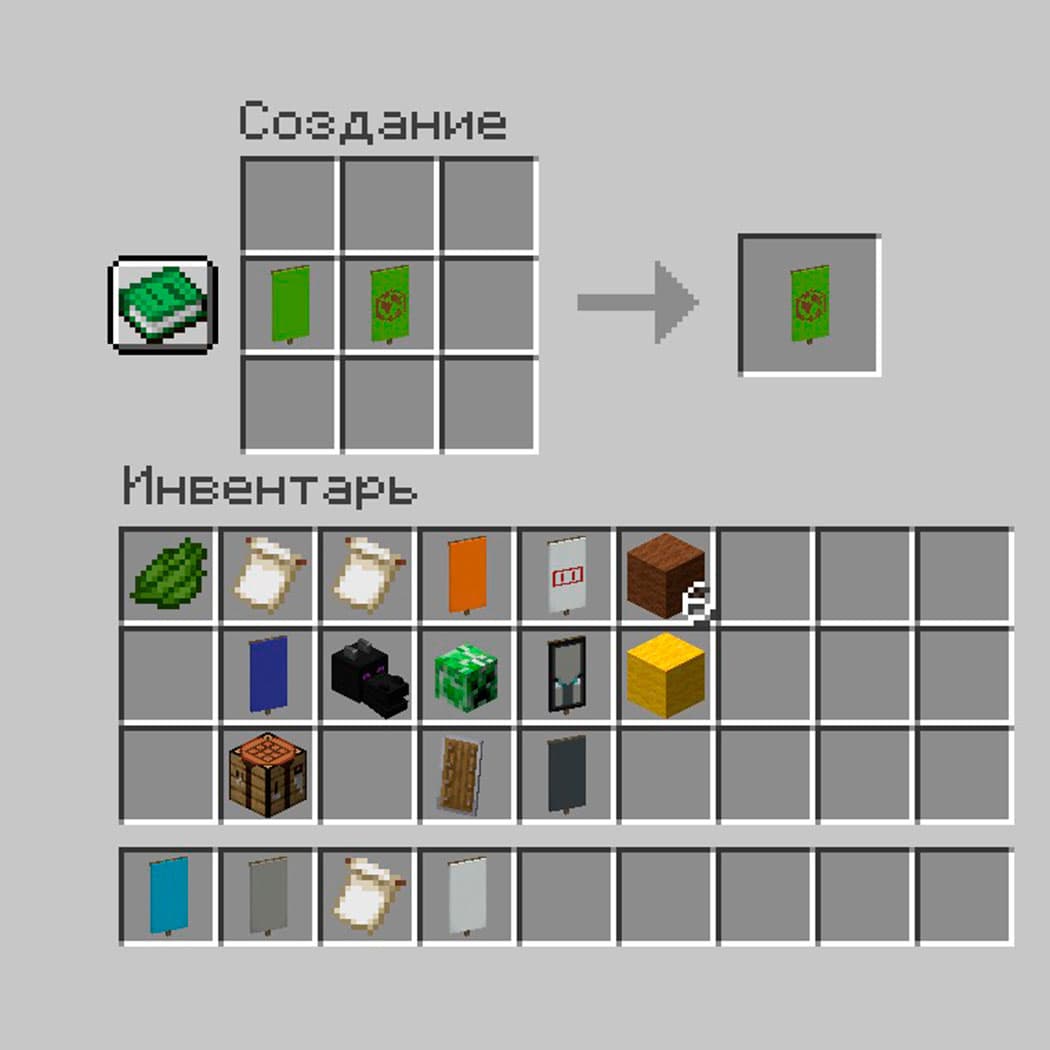 В Java комбинируй готовый флаг и щит в верстаке. В Bedrock фишка недоступна.