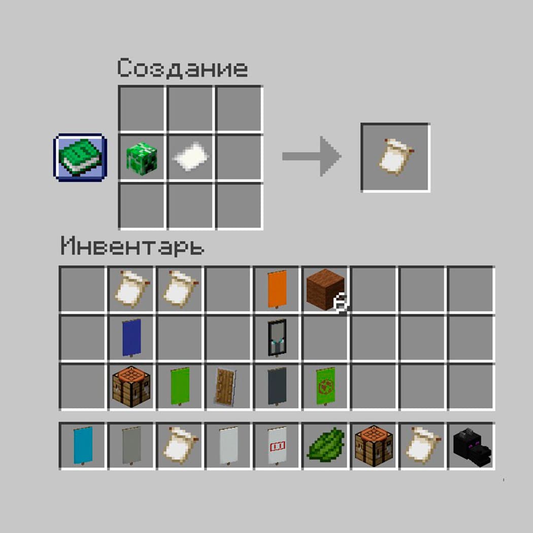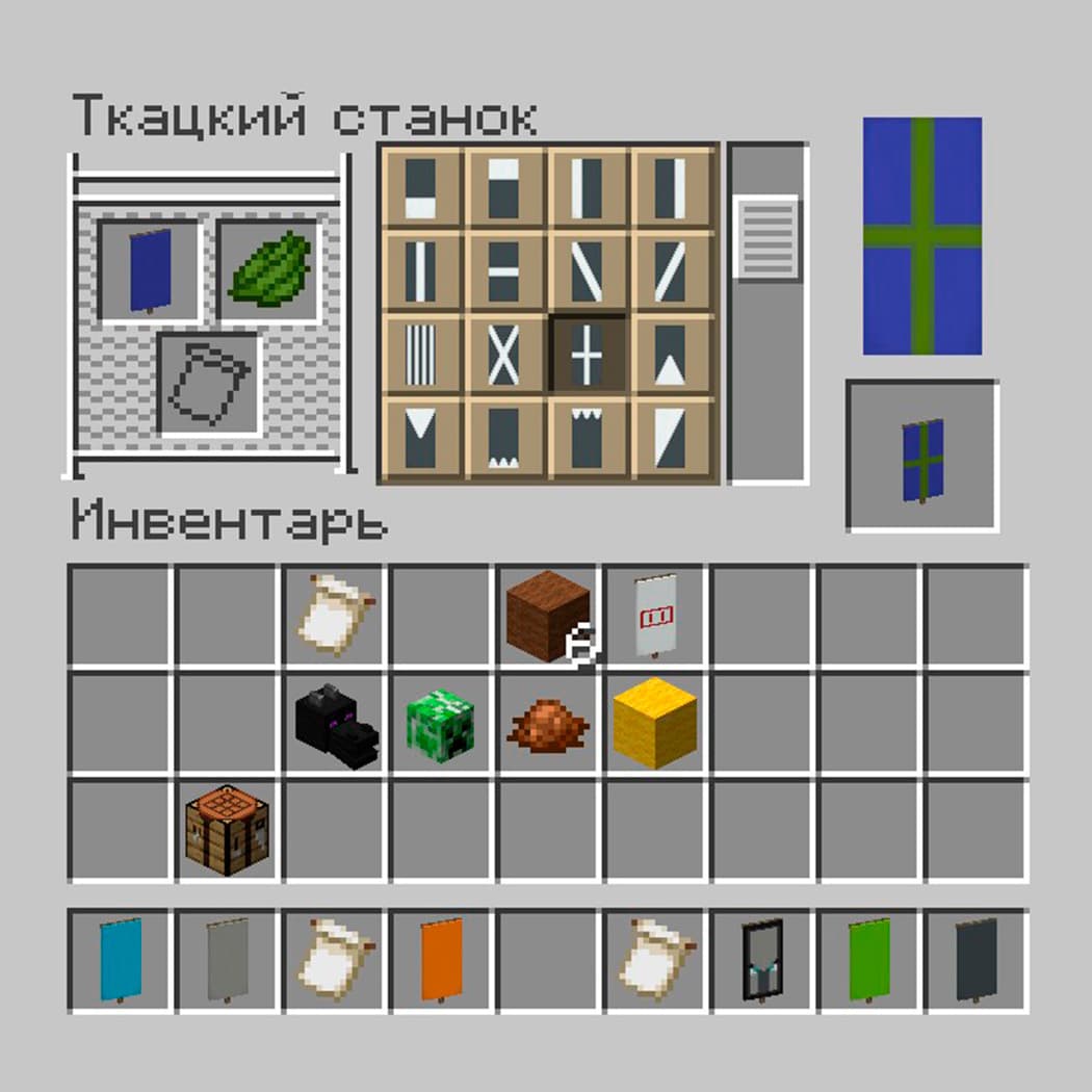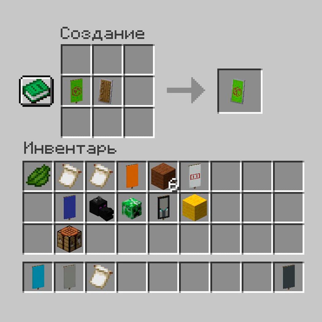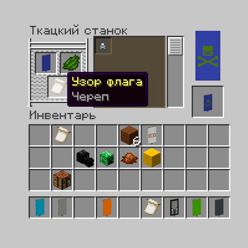 Флаг в Minecraft — это холст. Он ставится на землю, крепится к стене, его можно держать в руках, а также использовать для меток на карте и оформления базы. На него ты наносишь узоры, которые создаются через ткацкий станок и красители. Отдельные редкие рисунки доступны через шаблоны узора.