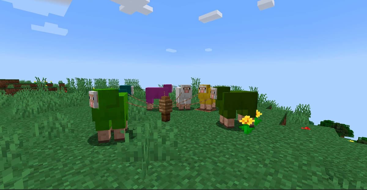 Чтобы быстро скрафтить много баннеров одного цвета, заранее подготовь красители и перекрась овец. Тогда ты будешь стричь сразу цветную шерсть и экономить время.
