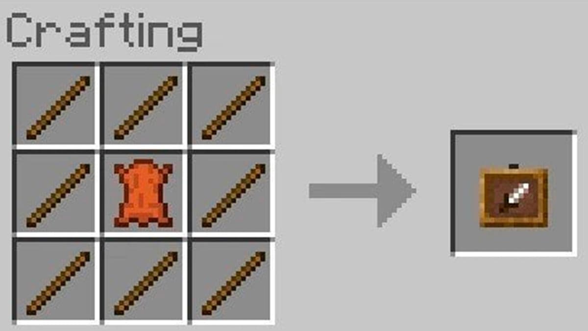 Что понадобится: восемь палок и одна кожа. На верстаке 3×3 разложи палки по периметру, в центр положи кожу — получишь одну рамку. Да, рецепт простейший, так что скрафтить десяток на склад — не проблема.