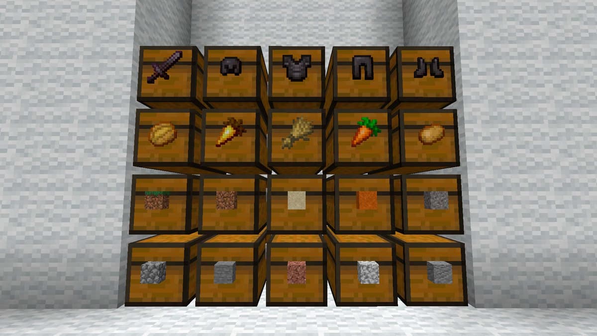 Если хочется навести порядок ещё сильнее, переименуй сами предметы на наковальне: «Руда: железо», «Еда: сушёная плоть для волков» — при наведении все подсказки будут написаны. Для редких ресурсов добавляй акцент светящимися рамками.