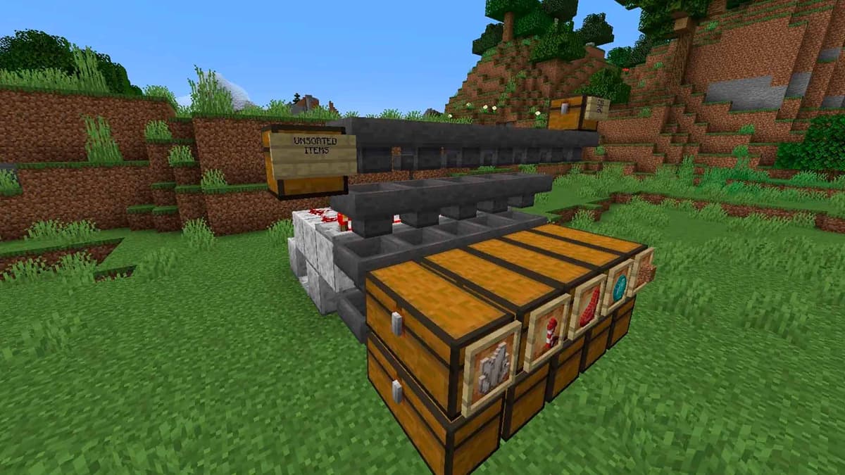 Сундук — не всегда удобная поверхность для крепежа. Решение — вешать рамку на блок над сундуком или использовать бочки как лицевую панель склада. Так ты избавляешься от случайных кликов по рамке, когда открываешь контейнер.
