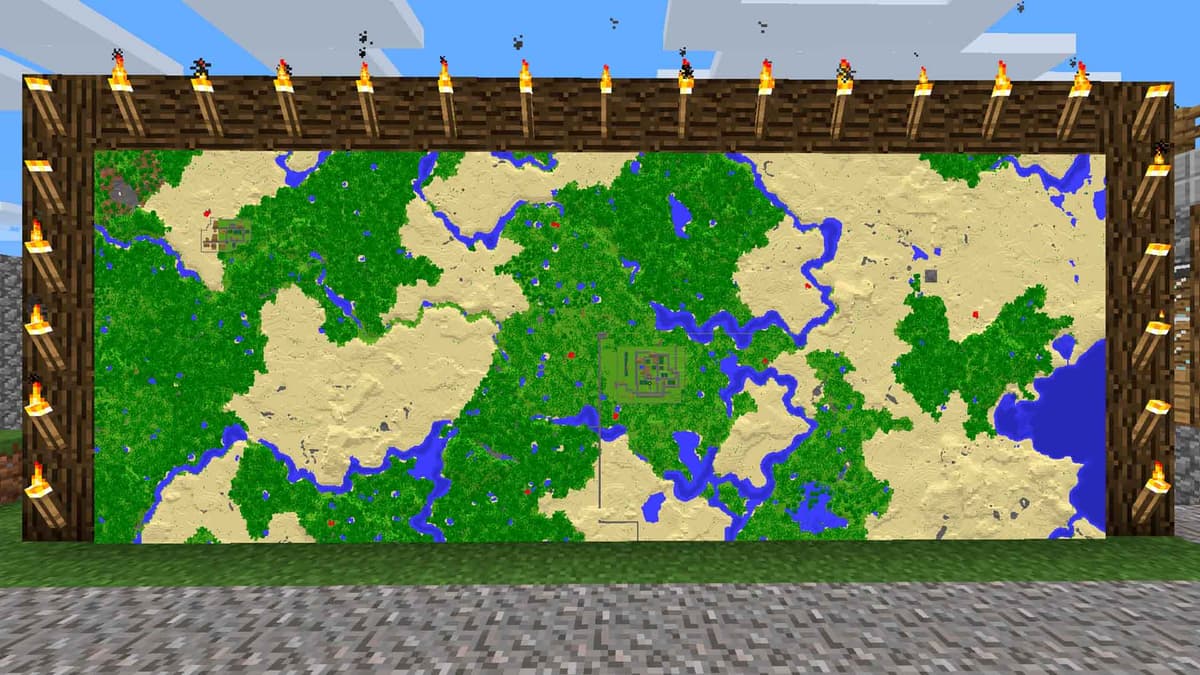 Сделай сетку из рамок и собери из карт «панораму» мира. Начни с одной карты, скопируй её на столе картографа, затем увеличивай масштаб (карта + бумага), чтобы каждая секция покрывала ровно нужную площадь.