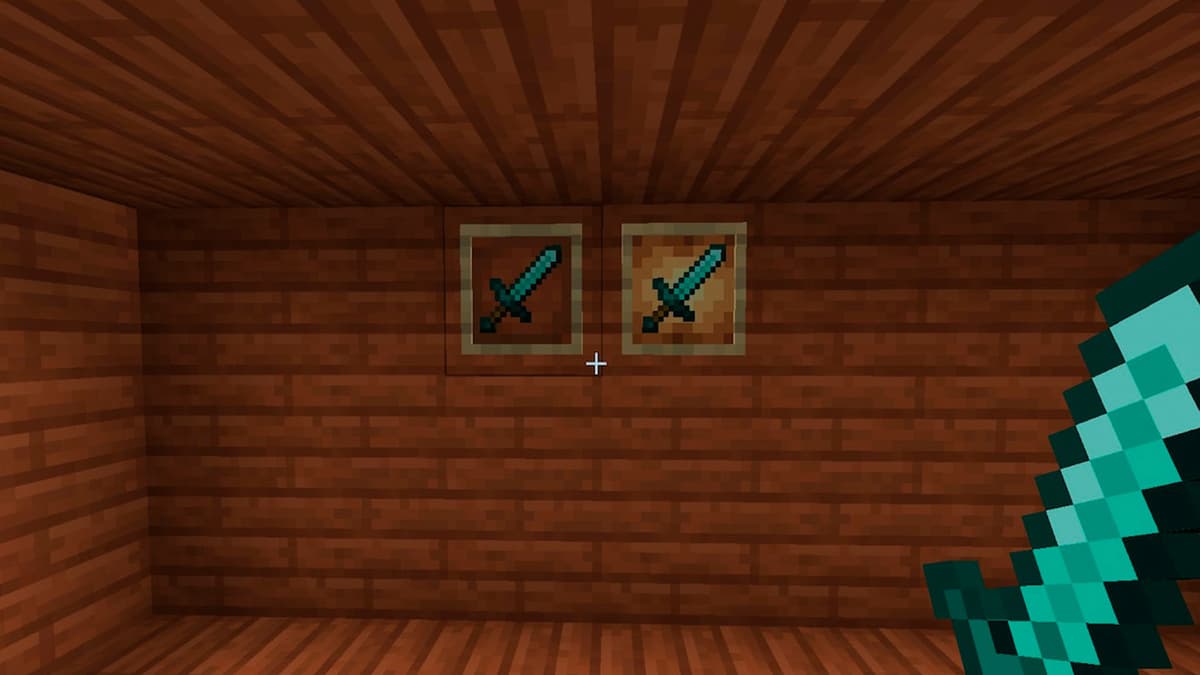 Не прячь лучшее в глубине склада. Элитры, незеритовые кирки с идеальной прокачкой, редкие книги зачарований — всё это красиво смотрится в галерее из рамок.