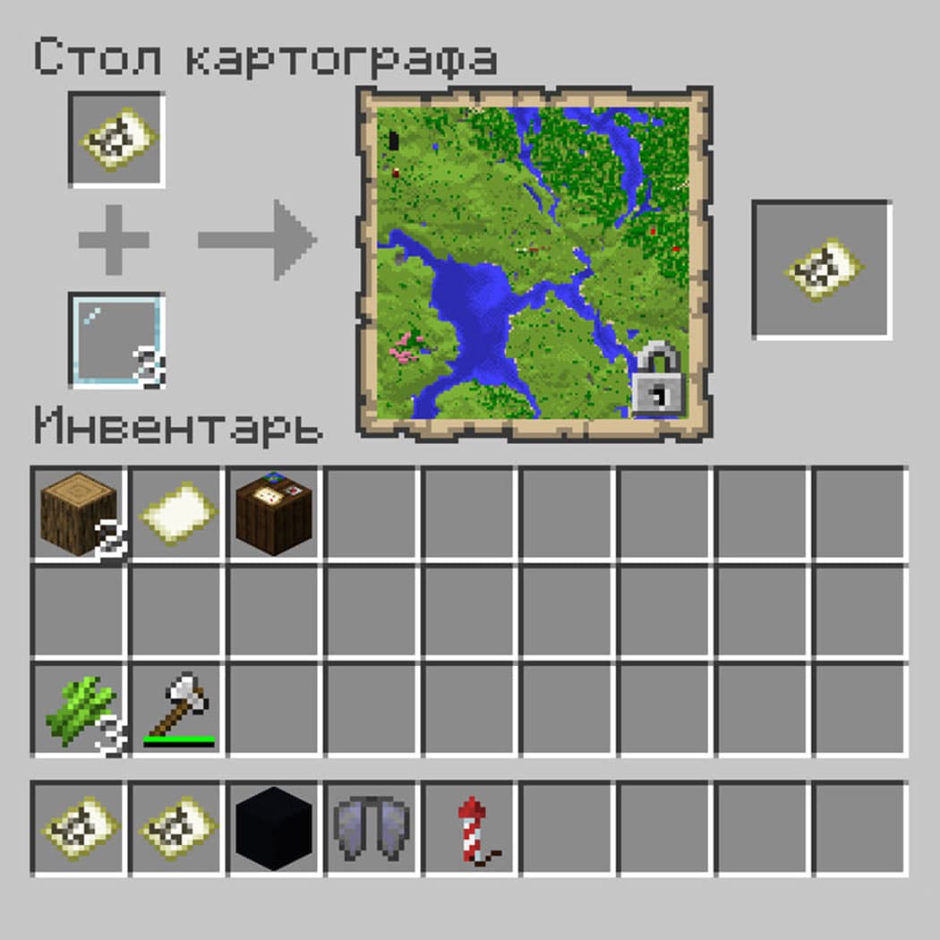 Стол картографа в Minecraft — это рабочий блок для карт: с его помощью ты сможешь копировать, увеличивать и блокировать карты. Но ещё это и рабочее место жителя с профессией картограф.
