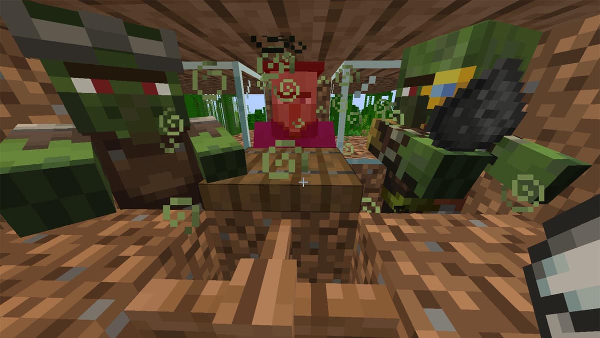Исцеление жителя‑зомби. Взрывное зелье слабости + золотое яблоко → получишь скидки у торговцев.