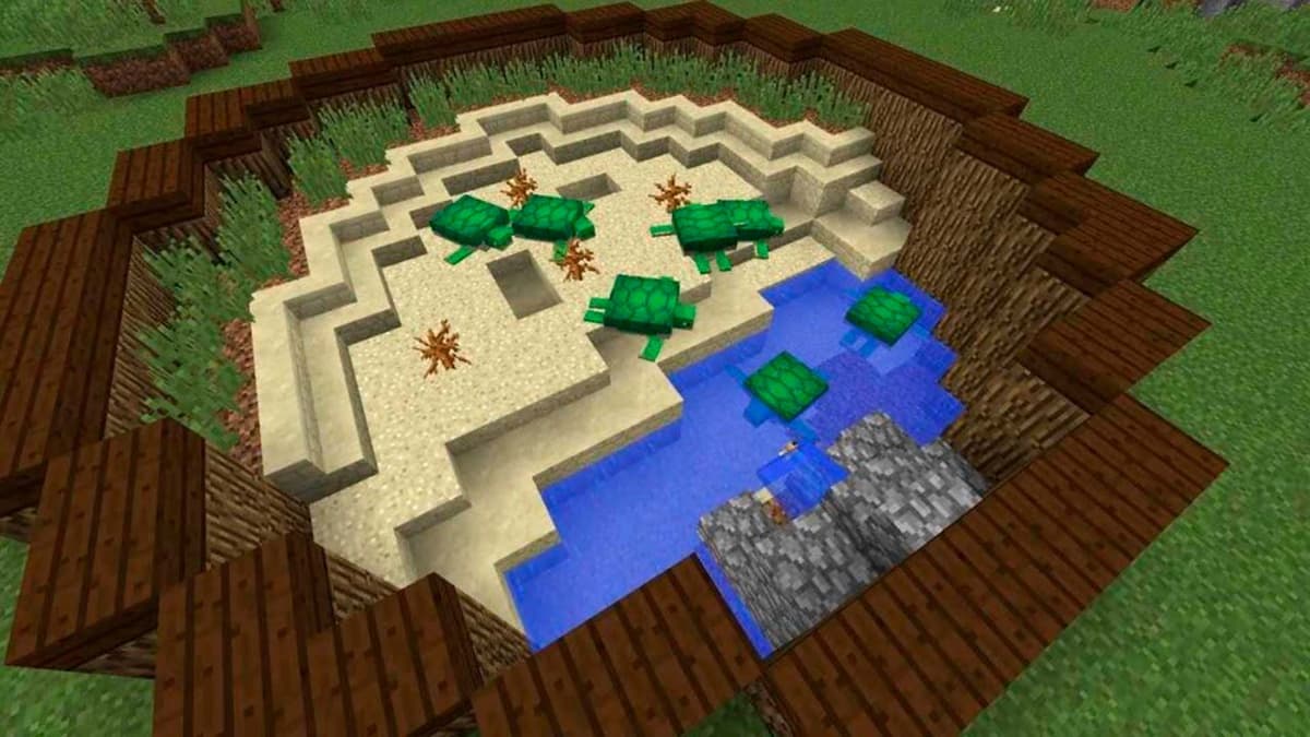 Для получения 5 чешуек построй загон черепах у пляжа, выведи две черепашки, корми их морской травой.