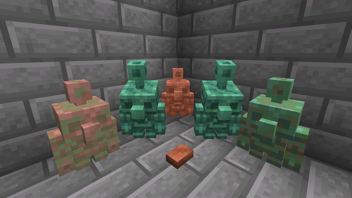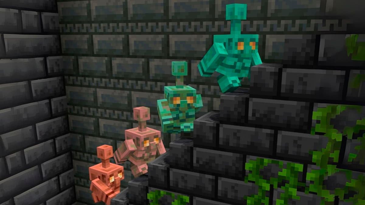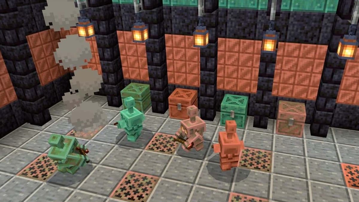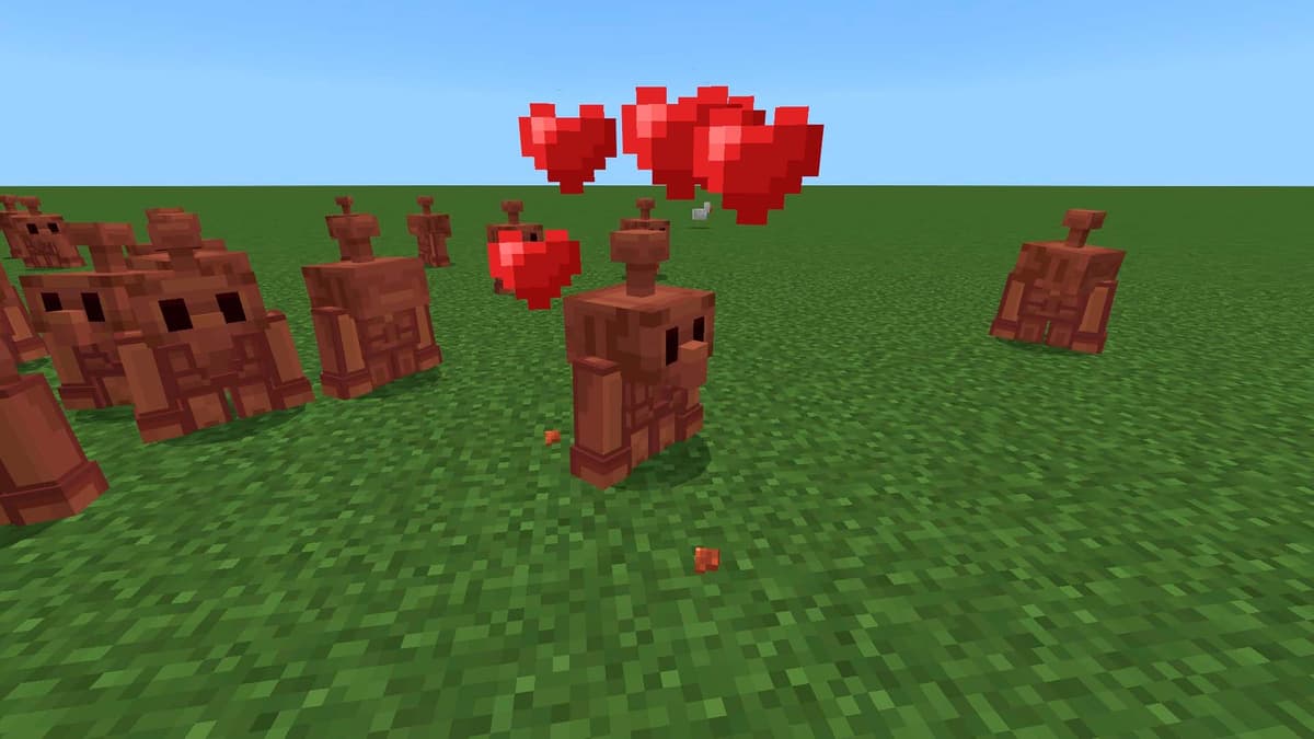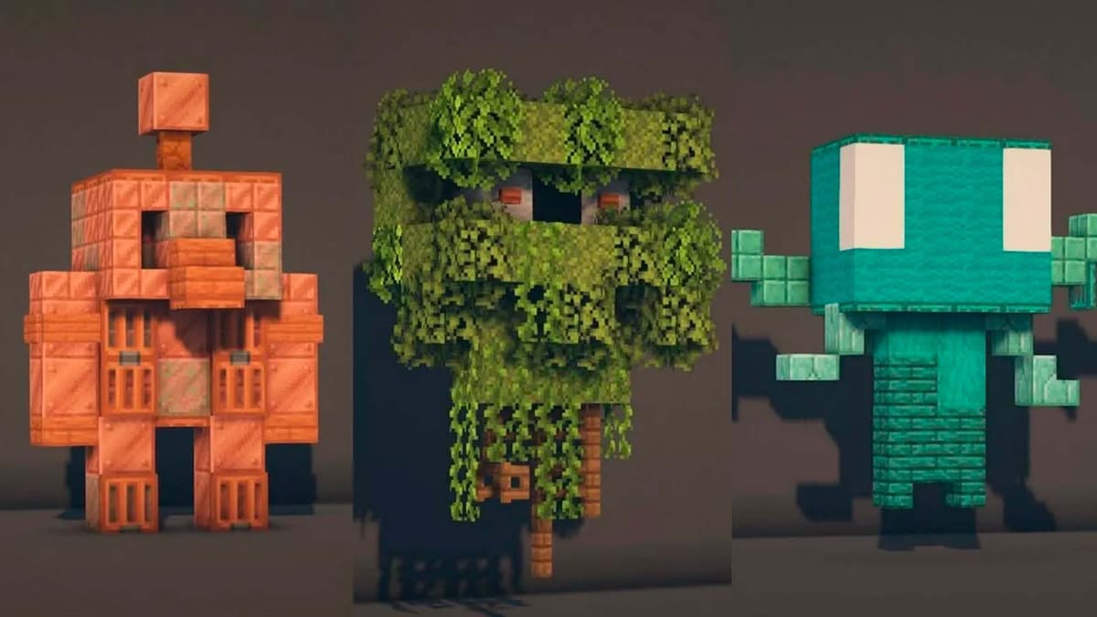 На Minecraft Live 2021 Mojang вынесла на голосование три варианта будущего моба: Аллей, Медный голем и Глэр. Медный сразу выделялся: не про бой и не про лут, а про взаимодействие с блоками. План был такой: в игру приходят медные кнопки, а маленький голем бродит рядом и время от времени их нажимает. К этому добавлялась механика окисления — как у медных блоков: от свежего блеска до благородной патины, с финалом в виде полного застывания.