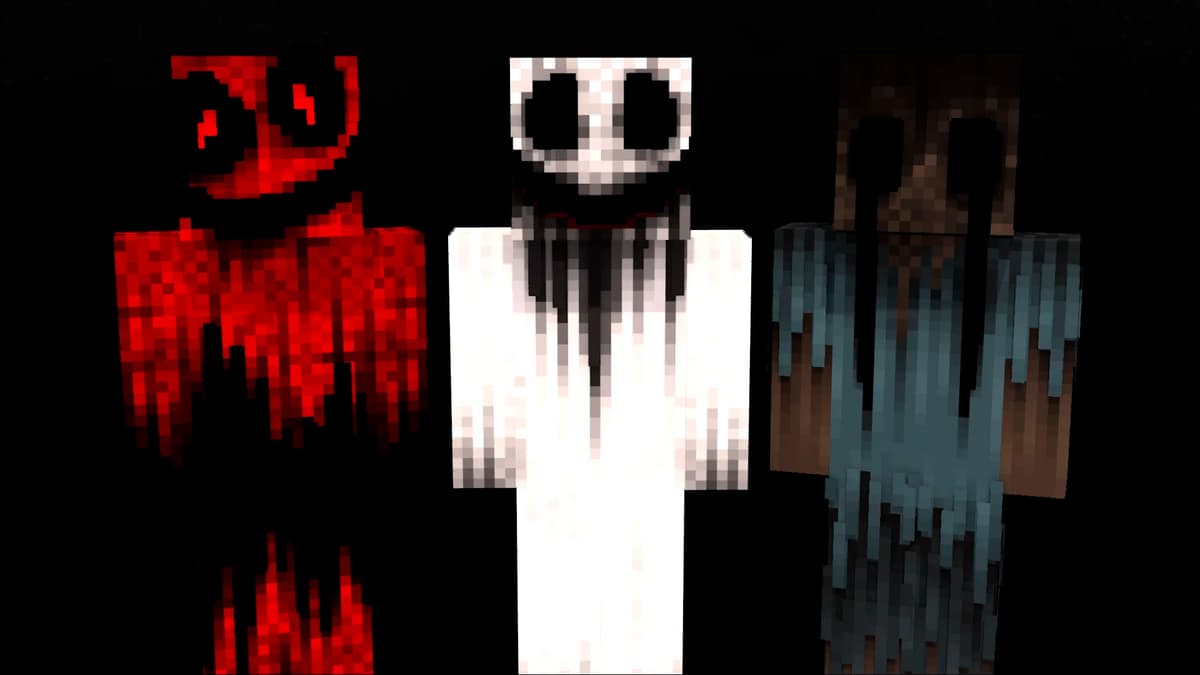 Скины с пустыми глазами, поломанными лицами, глитч‑эффектами и «неправильной» анатомией. Особенно если их используют на серверах без предупреждения: стоящий в темноте игрок с пустым лицом цепляет сильнее любого моба.