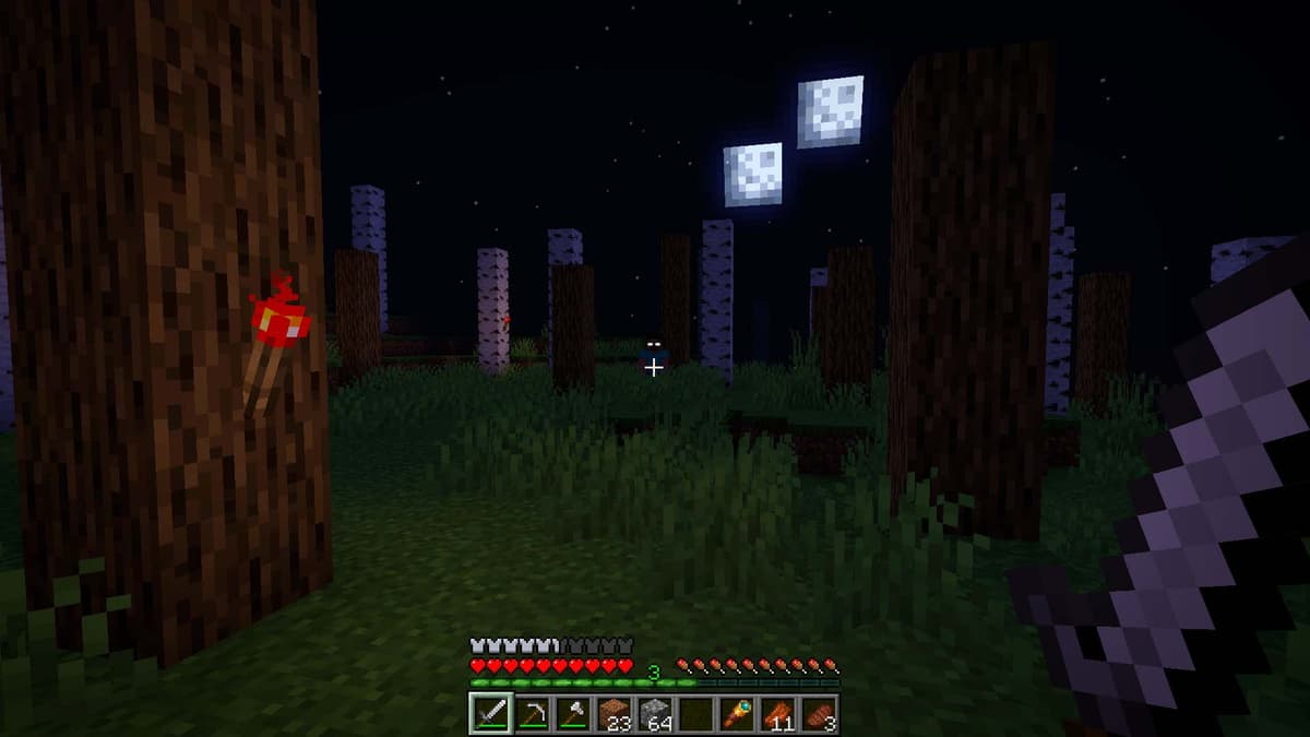 Ночь на поверхности. Вроде знакомый мир, но как только садится солнце, всё превращается в открытую арену. Ты уже не гуляешь — ты постоянно оглядываешься. Вдалеке мелькнул силуэт, услышался выстрел скелета, а из травы вылезает крипер, которого ты не заметил.