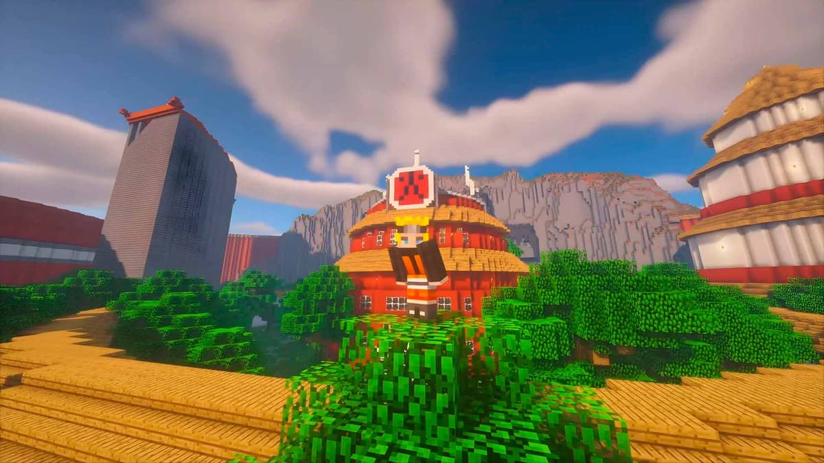 Совет: выбери фракцию и один символ — круглая дверь Учиха, алый баннер Акацуки или фонари Конохи. Построй вокруг него двор/улицу — остальное поддержит образ.