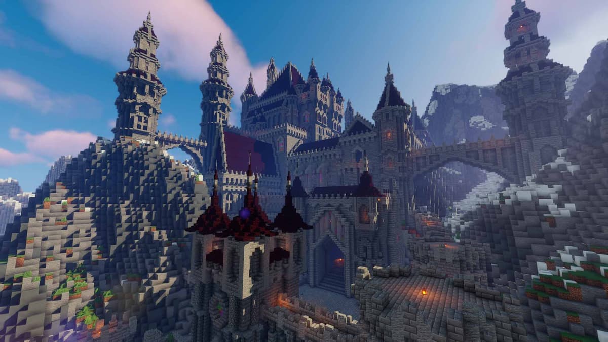 Базальт, чёрные массы, огонь и цепи. Стимпанк‑цитадели и крепости смотрятся брутально и кинематографично.