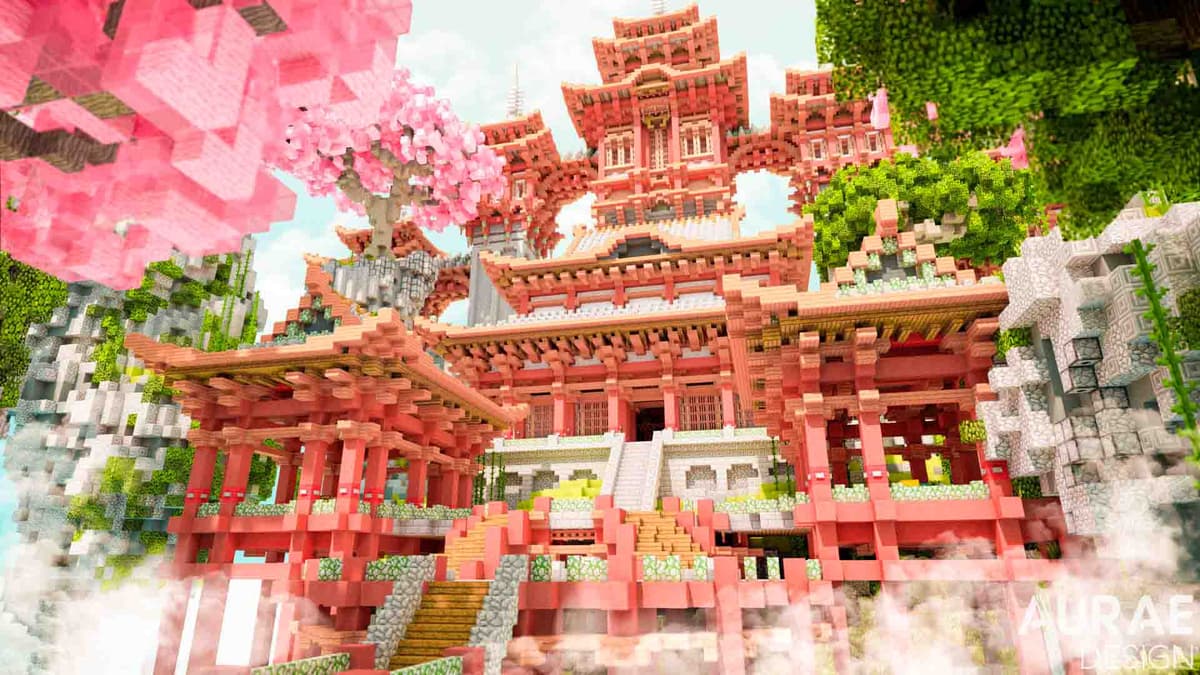 Розовые кроны и мягкий свет. Японские дворы, пагоды, чайные павильоны — нежная, фотогеничная сцена.