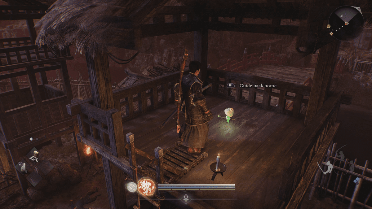 Дух ждёт тебя на холме рядом со святилищем у дороги, которое ты найдёшь в самом начале игры. Иди от святилища на юг, а затем двигайся вдоль холма рядом с рисовым полем, пока не найдёшь выступ, на который можешь запрыгнуть. Продолжай идти вперёд, пока не наткнёшься на искомый предмет.