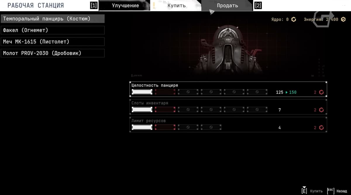 Как только добираешься до первого убежища и открываешь меню специальной станции, выступающей здесь магазином и верстаком в одном лице, мозг ломается от непреодолимого желания улучшить каждый пункт здесь и сейчас! Хочется и здоровья побольше, ведь бьют очень больно, и инвентарь пошире, так как в него ничего не влезает, и выстрелы побыстрее, потому что жирный противник пару комнат назад заставил одуреть от количества перезапусков по причине нерасторопности усиленных атак.