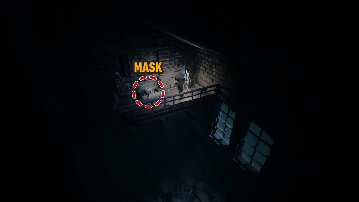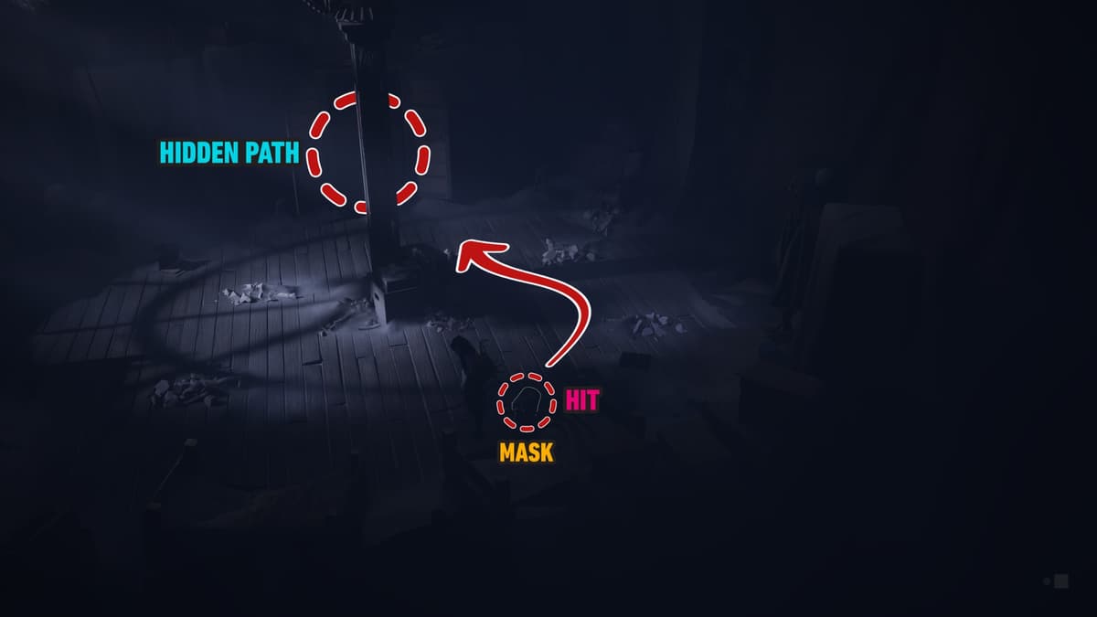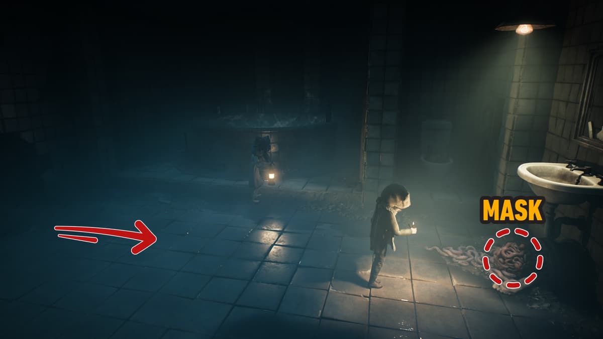 Как только угол обзора сменится, увидишь маленькую секретную комнатку. Пролезай в щель и подбирай маску с пола. Всё — финал первой «пачки» коллекции.