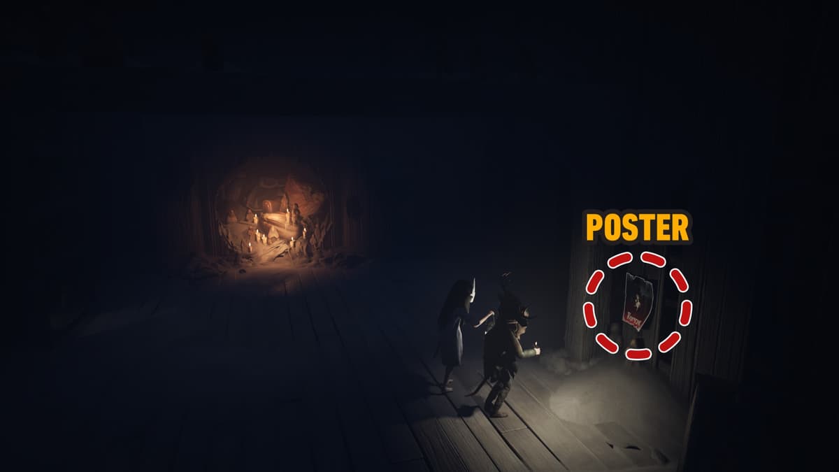 В секретной комнате перейди на другую сторону и подними постер со стены.