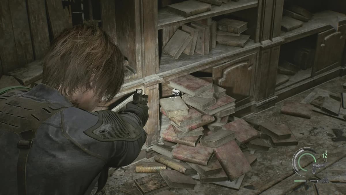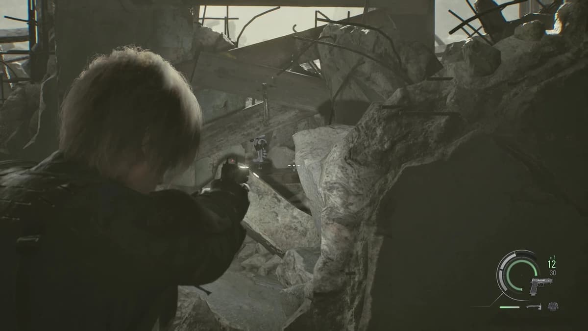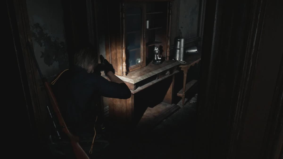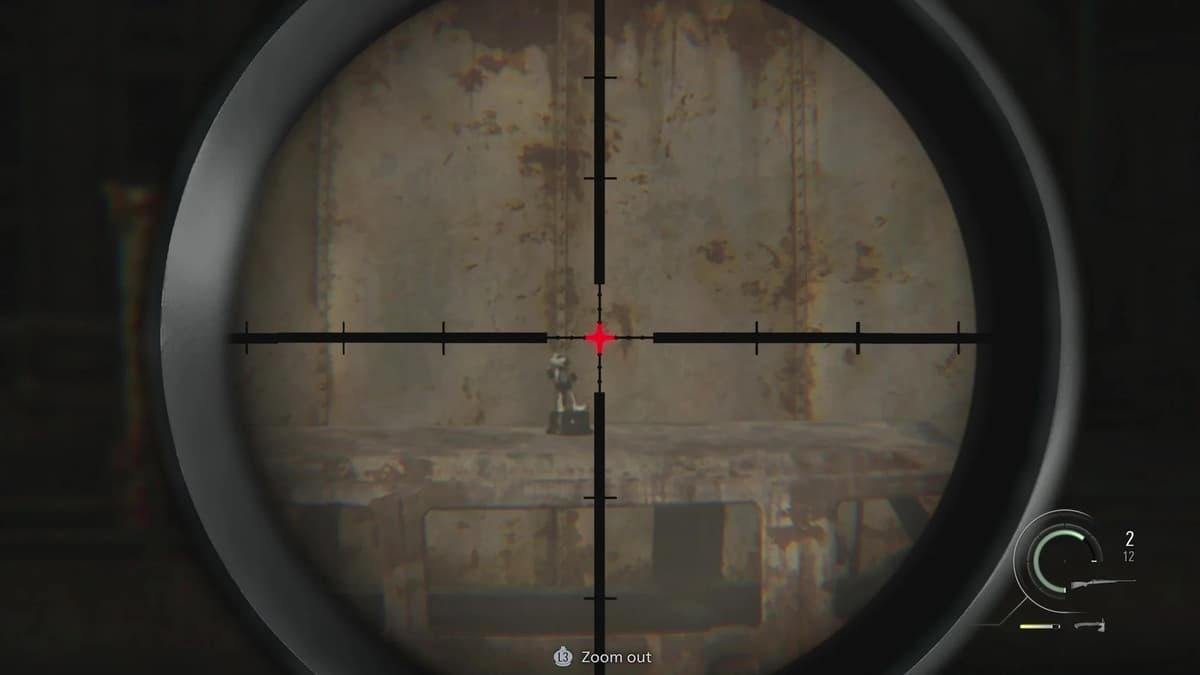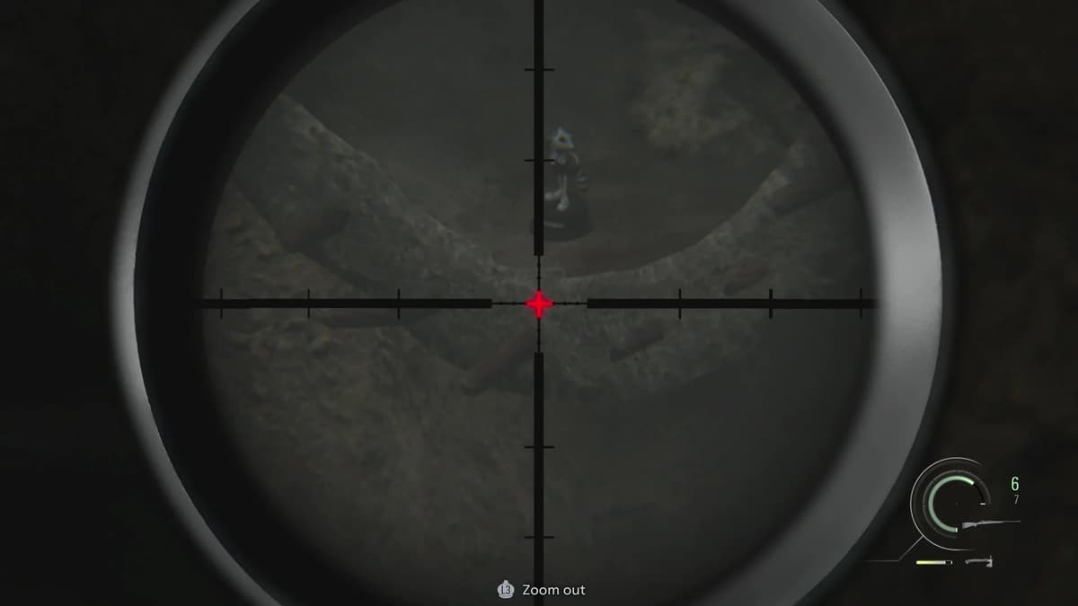 Короткий, но сложный момент. Ты за Леона прикрываешь Грейс с помощью снайперки. Не сиди на месте — беги на балкон, найди комнатку с разбитым окном и глянь в прицел на север. Статуэтка находится на верхушке фонарного столба во дворе. Во втором прохождении, когда прикупишь нормальный прицел для винтовки Classic 70, будет легче. Но и с базовой оптикой разглядеть можно — просто всматривайся в верхушки столбов. Если не видно, попробуй подвигать прицелом.