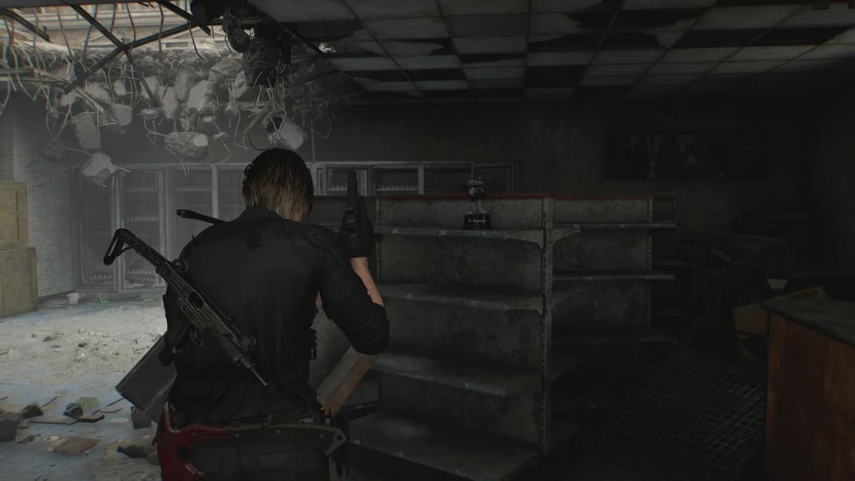 Как только доберёшься до Раккун-Сити, не спеши бежать по сюжету. Сразу после того, как вылезешь из машины, оглянись по сторонам. Слева будет заброшенное кафе «Оазис». Заходи внутрь — на полке за стойкой стоит енот. Выглядит он подозрительно целым на фоне разрухи, но твоя задача — это исправить.