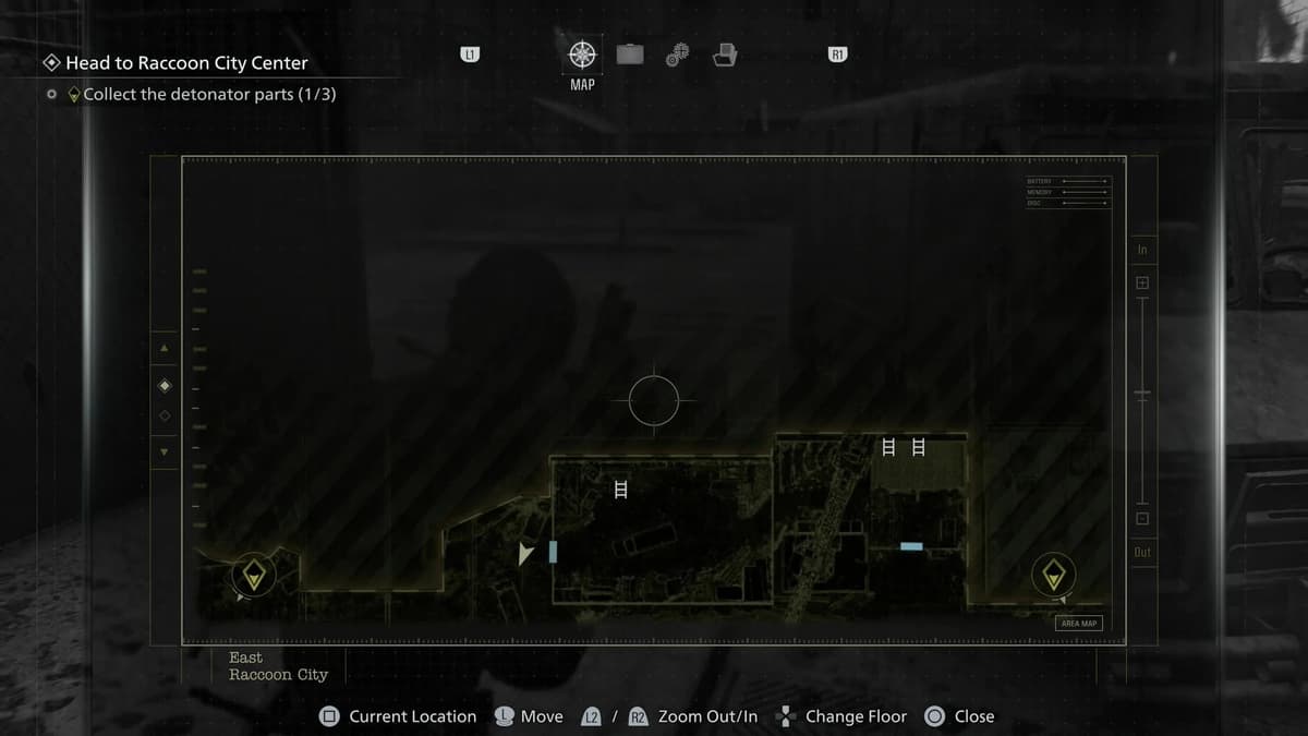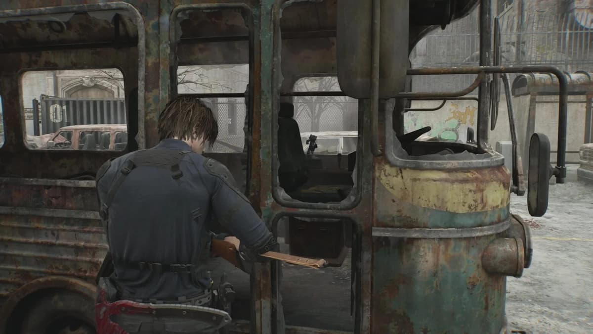 После эпичной погони на мотоцикле слезай с байка и сразу иди прямо. Там, где стоит взорванный бензовоз и лежат обломки, среди мусора танцует Мистер Енот. Ностальгическое место: находишься ты примерно там, где в ремейке Resident Evil 2 начиналась первая кампания.