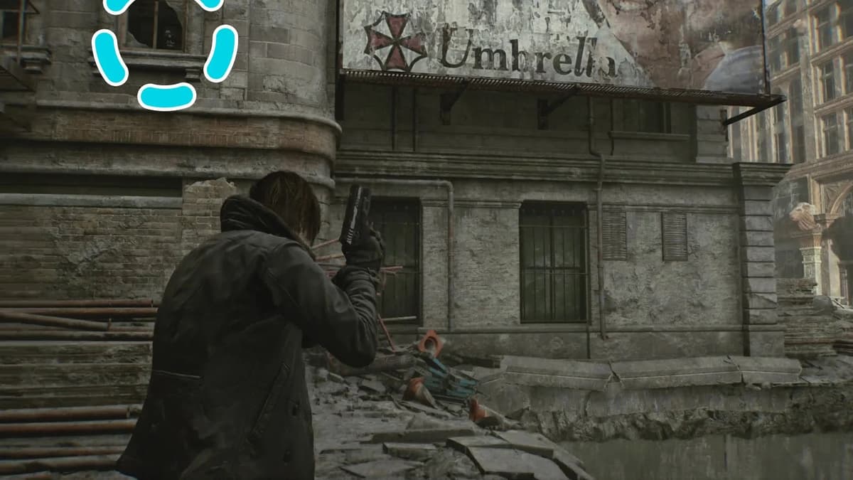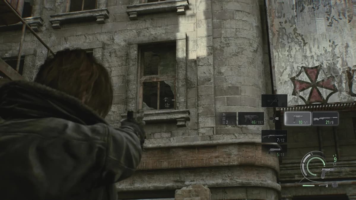 Во дворе у Оружейного магазина Кендо поверни направо, в открытую калитку. Там тупик, заваленный обломками. Посмотри вверх, чуть левее рекламного щита с логотипом «Амбреллы». Сквозь окно видна статуэтка.