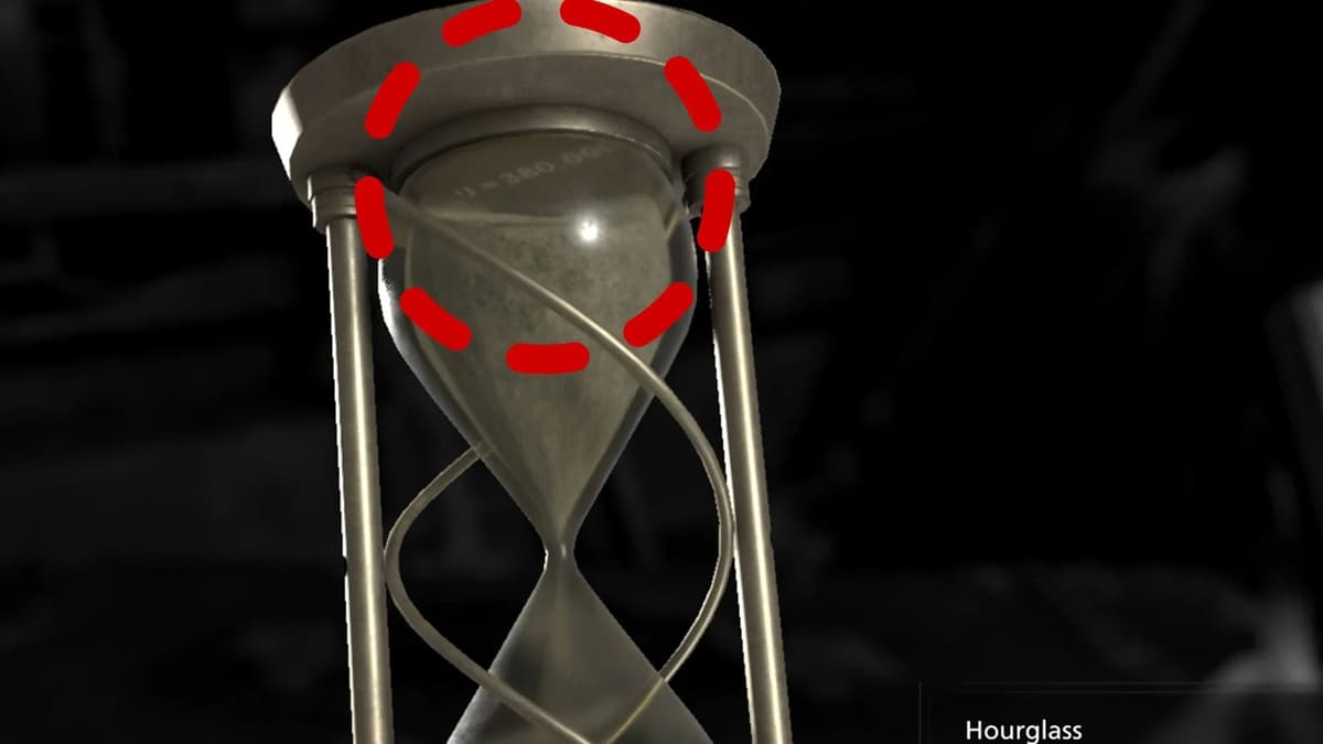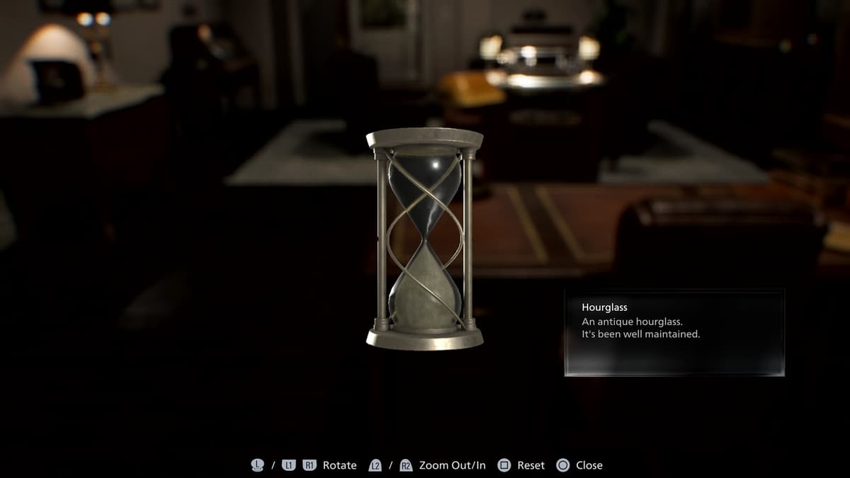 Чуть позже, в странном VIP-номере за внутренним двором, на столе можно увидеть Песочные часы. Снять их с подставки можно, но для пазла в центре комнаты они слишком большие. И даже когда решишь местную загадку, часы так и останутся у тебя в инвентаре.